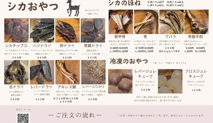 この“車の中で食べられるシカ”から、今のペット用シカおやつづくりへと広がっていきました。